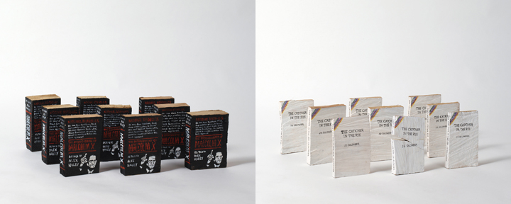 I’m not entirely certain where Dan Starling‘s study of Malcolm X and J.D. Salinger is going, but his visual juxtapositions are interesting. Here’s what’s on the Web site of the Richmond Art Gallery in Richmond, British Columbia, where the exhibit is on display: “Both men stopped speaking and publishing during the same historical moment in 1965. Photographs, a travelogue video and book works examine the last public significations of both men. The artist reconfigures what these materials might represent in considering the formation of cultural memory in a society preoccupied by celebrity, racialization and authenticity.”